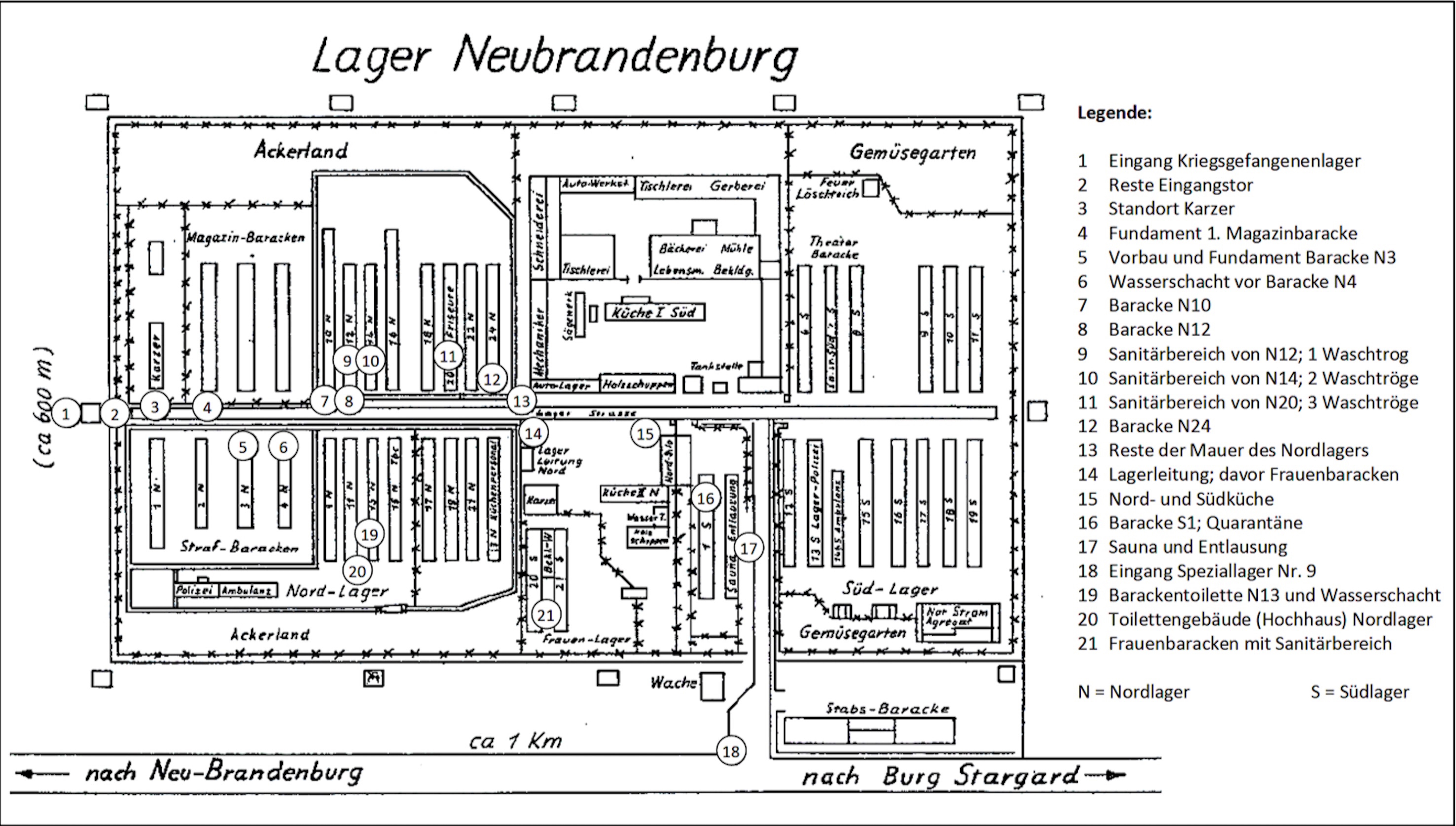 Vorige afbeelding Volgende afbeelding 07_Fünfeichen_02_Lagerplan_Stalag II A und Speziallager Nr. 9 Plattegrond van kamp ‘Funfeichen’. Bron: