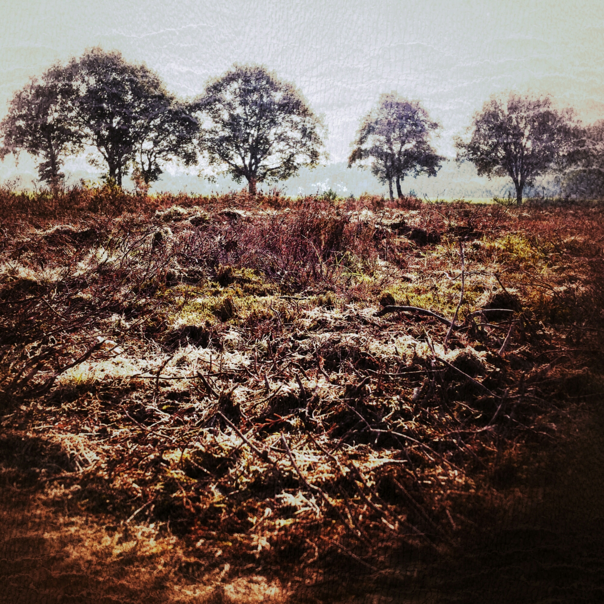 ‘Chemain de Steenwyk à Meppelt’ van een ander stukje bekeken. Vanuit het licht verzonken pad opkijkend naar de velden van het iets hoger gelegen Busselte. Darp, 2016
