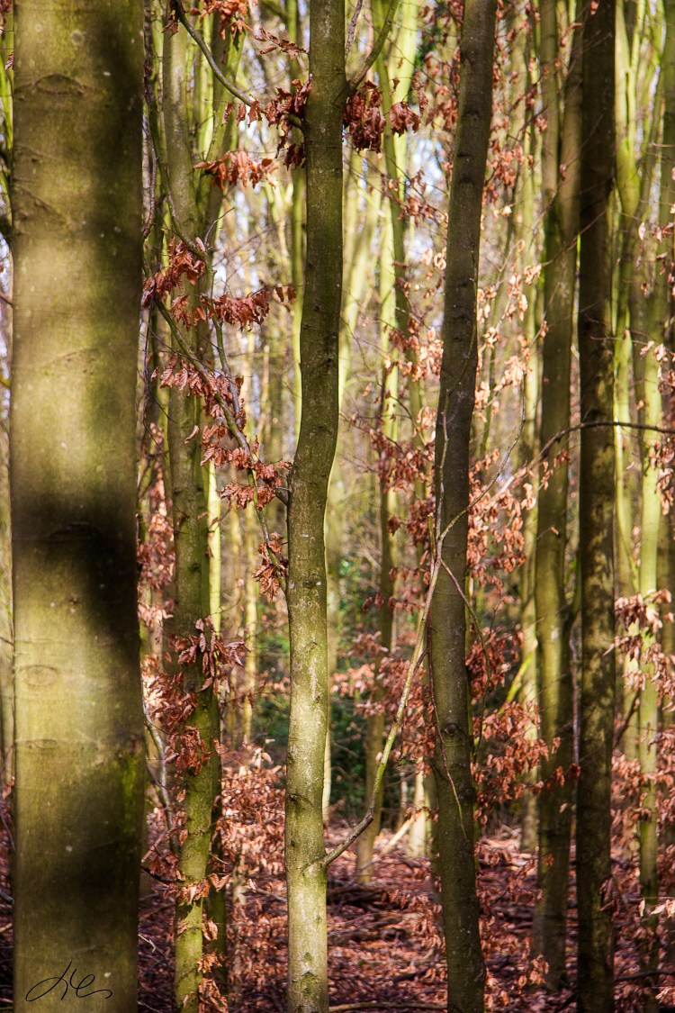 Een fragment van dat ene moment waarbij de droge blaadjes van de beuk, de groene aanslag van de altijd vochtige grond, de systematische opzet van staken en het zonlicht samensmelten tot een magisch tafereel. Darp 2017