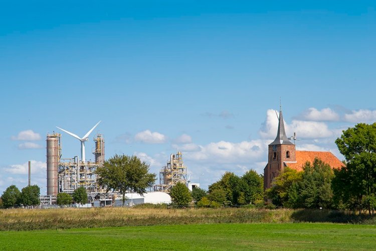 Heveskes | één van de verdwenen dorpen in de Oosterhoek in Groningen. Huizen hebben plaatsgemaakt voor dijkverhoging en industrie. De kerk mocht blijven.
