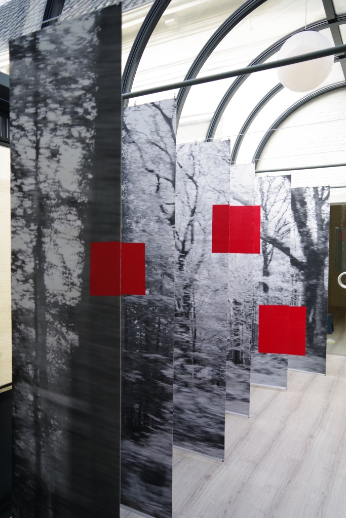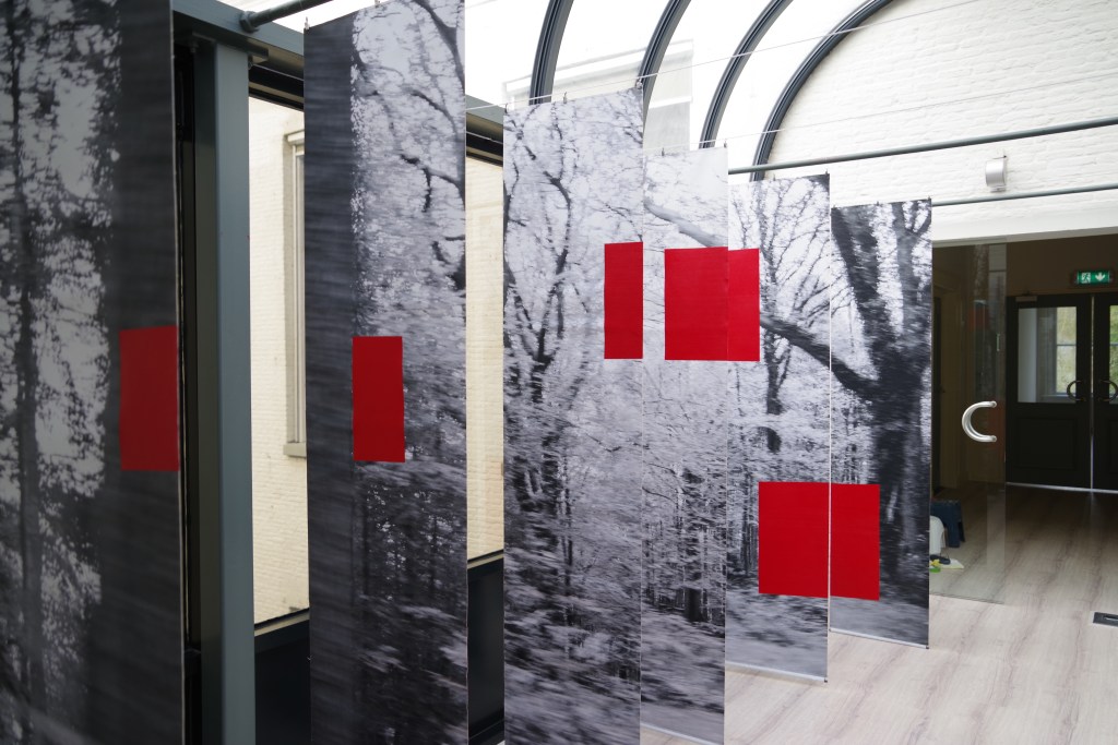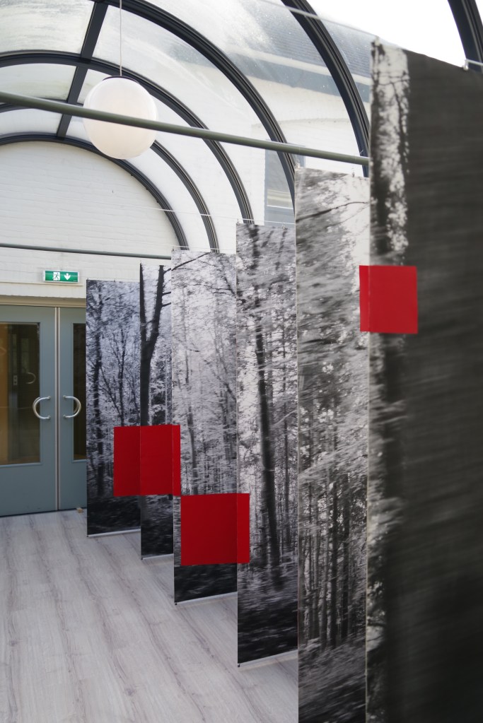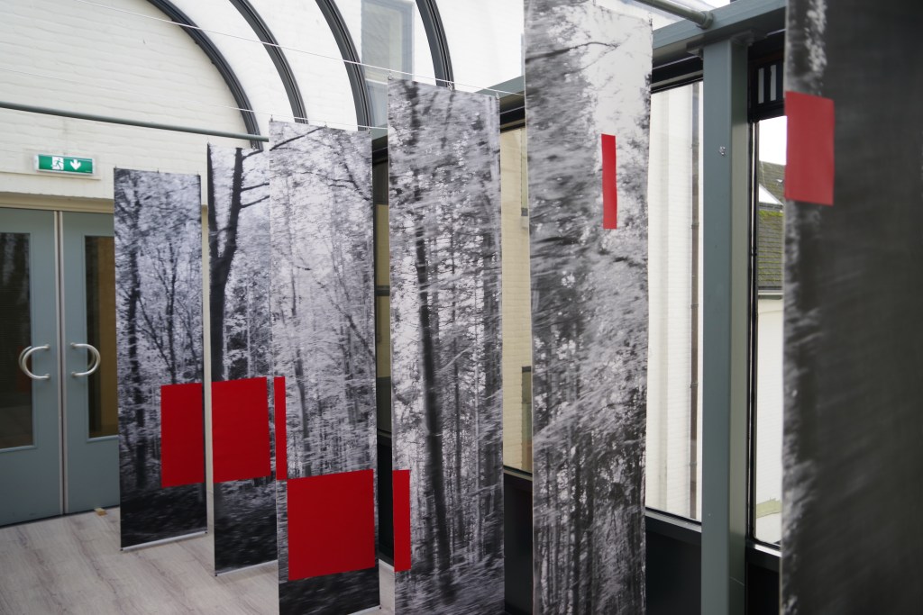 LICHTWERK is een installatie van zes canvas doeken, aan weerszijden bedrukt met steeds een deel van een foto van een bos. De delen samen vormen één beeld. Het beeld is met snelheid genomen en laat daarmee een bevroren beweging zien. Op de doeken zijn vlakken geschilderd. Ze lijken willekeurig door hun onregelmatige vorm en hebben een doordringende rode kleur.