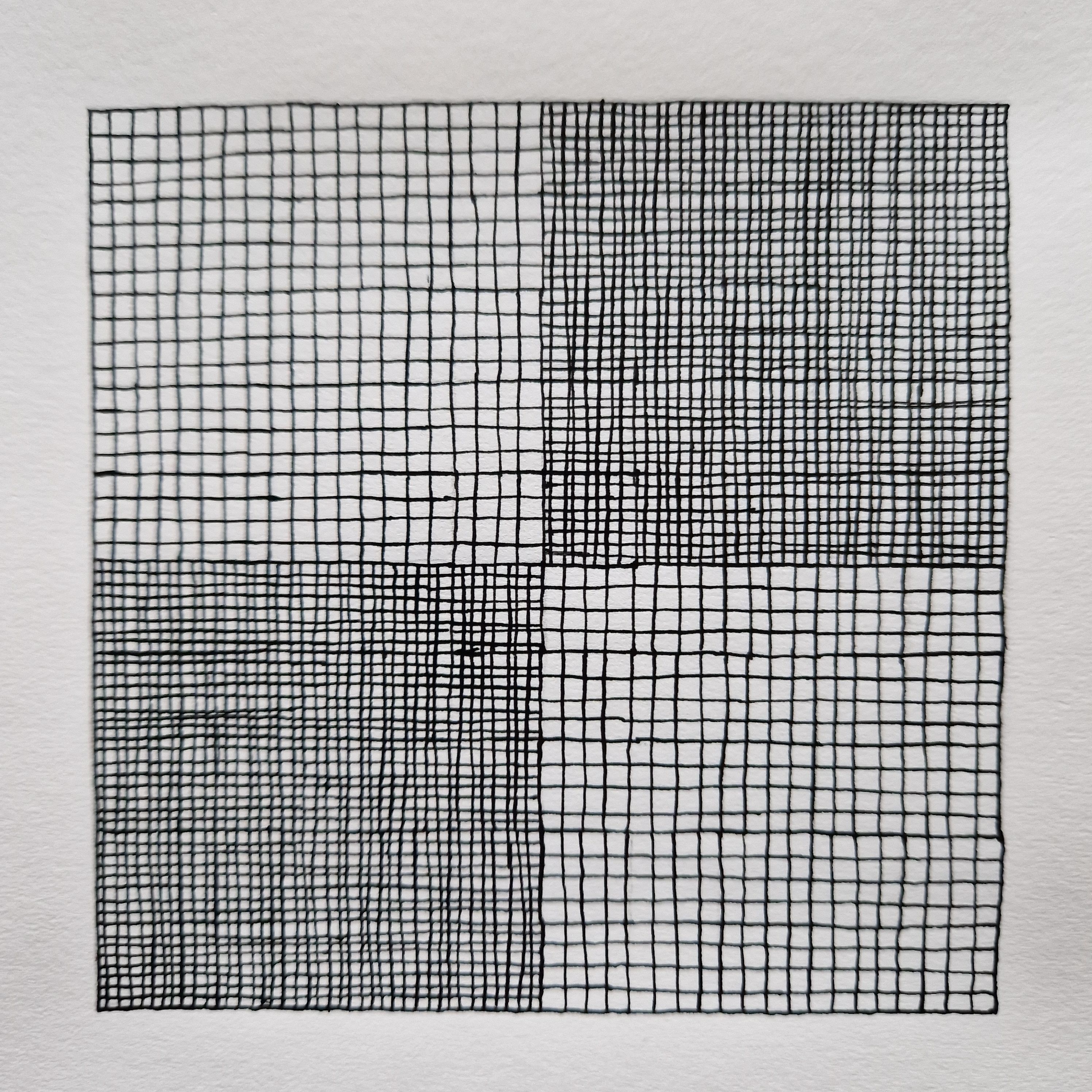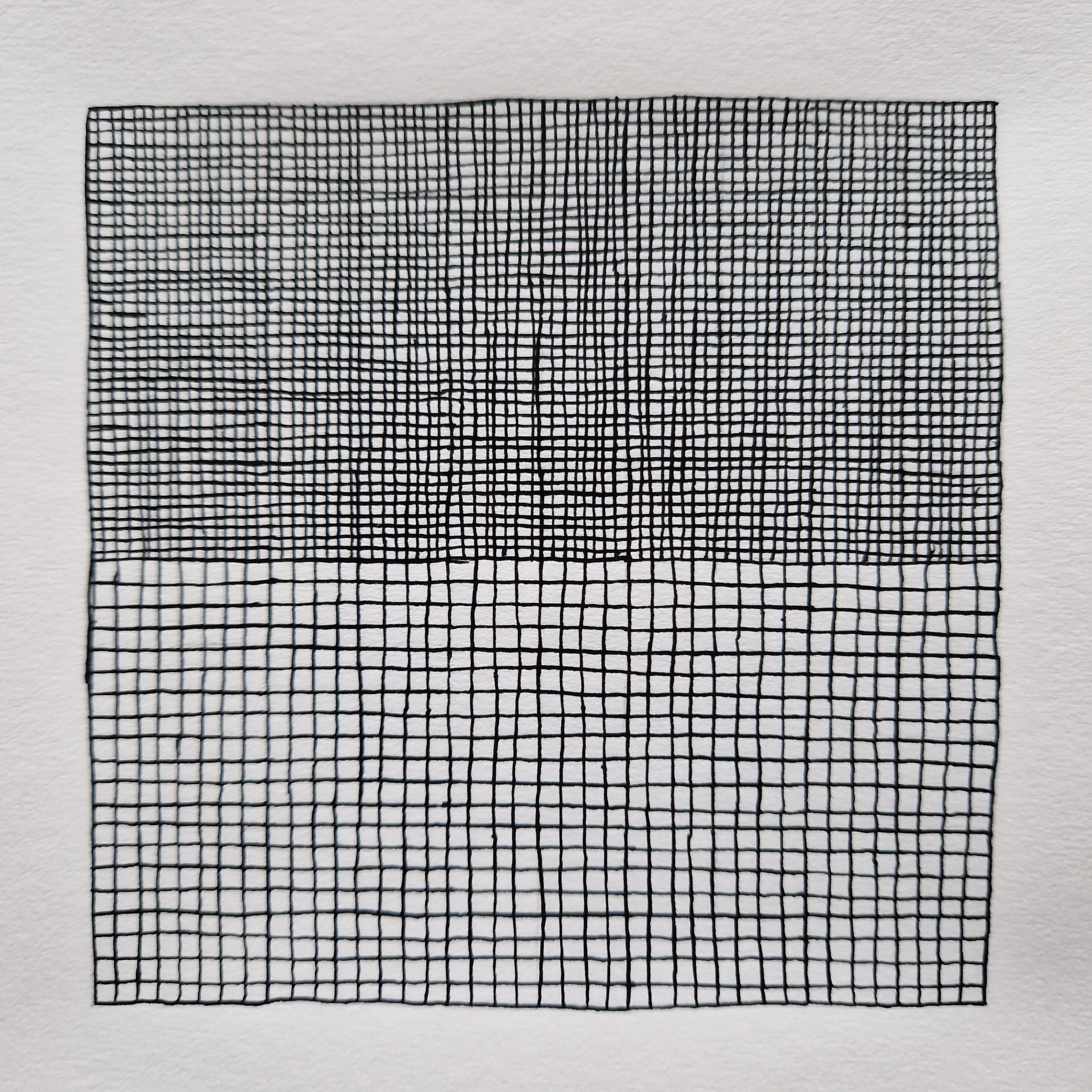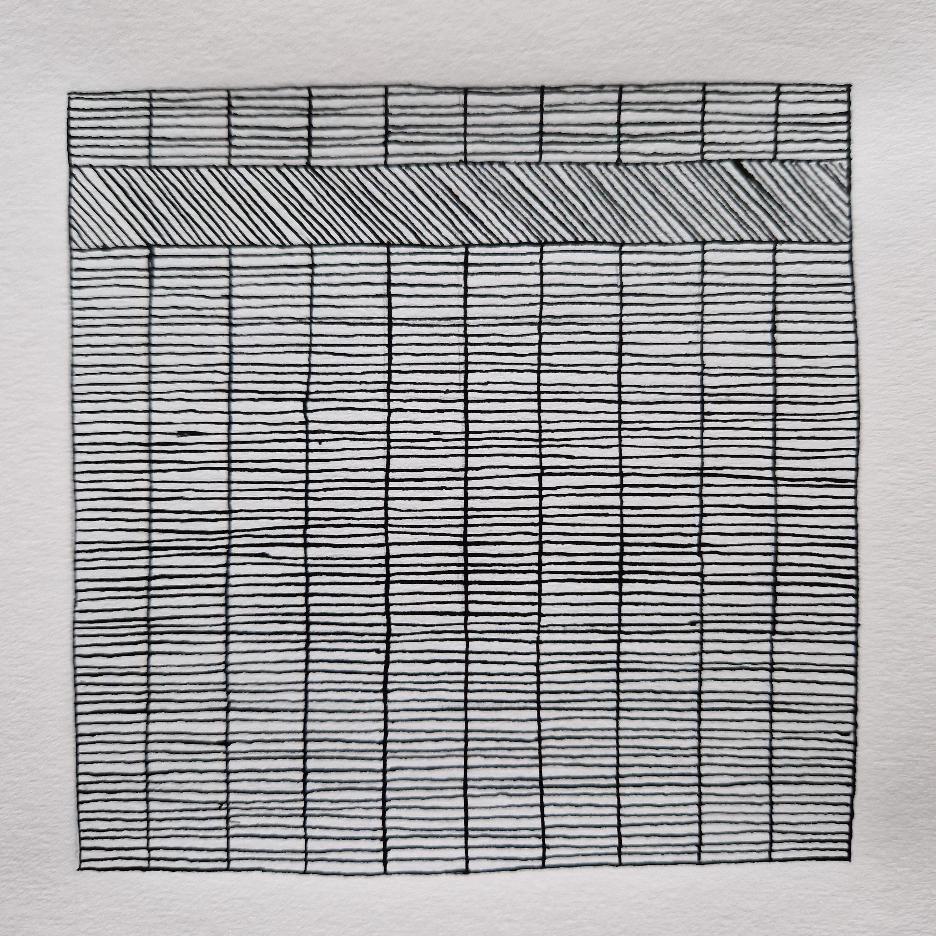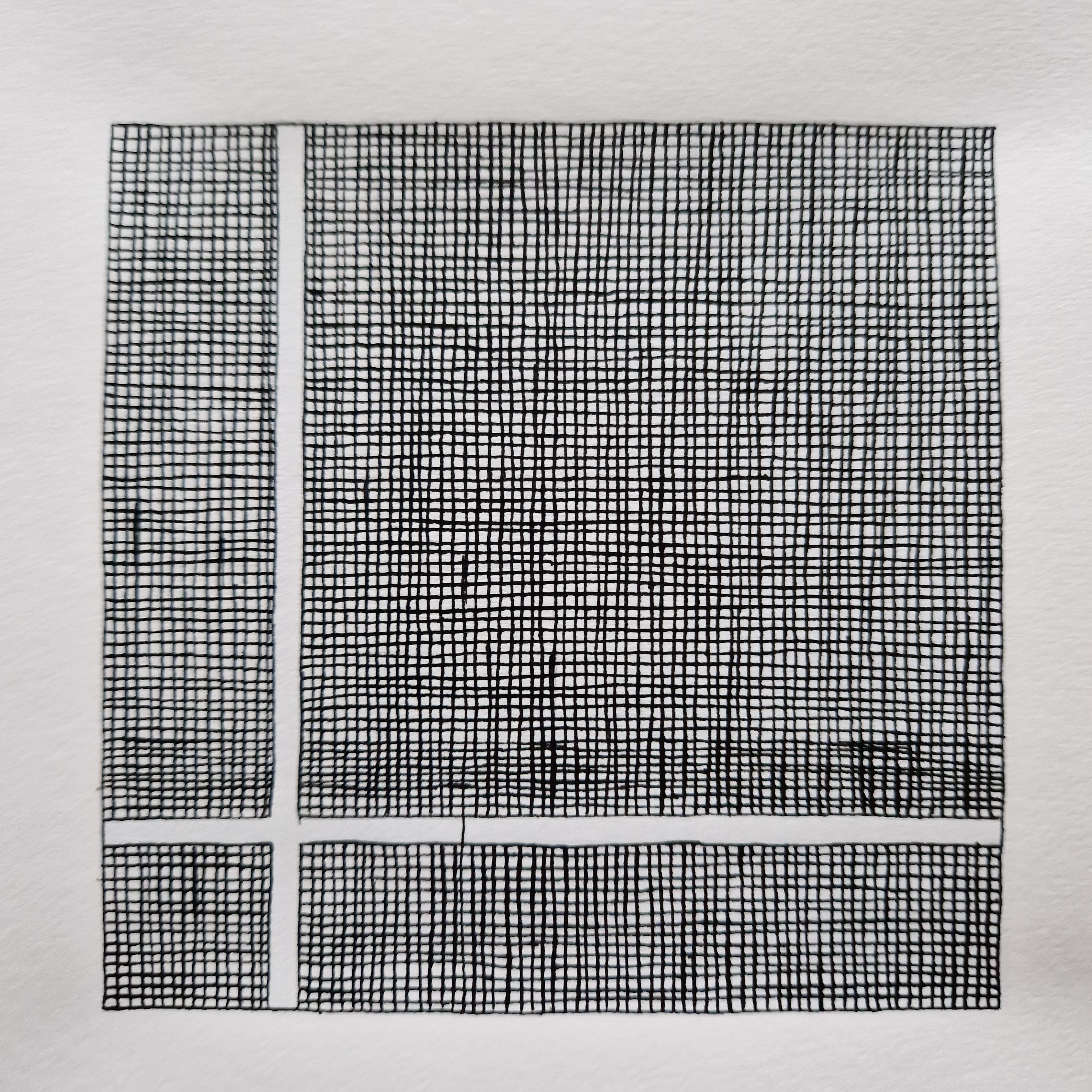 Mijn reflecties vertellen een ander verhaal. Of juist geen verhaal. De serie is ontstaan uit de behoefte los te komen van het denken. Een gelijkmatig raster vormt de basis, Oost-Indische inkt en kroontjespen doen de rest. Tekeningen waarbij eenvoud de boventoon voert en emotie op de achtergrond blijft.