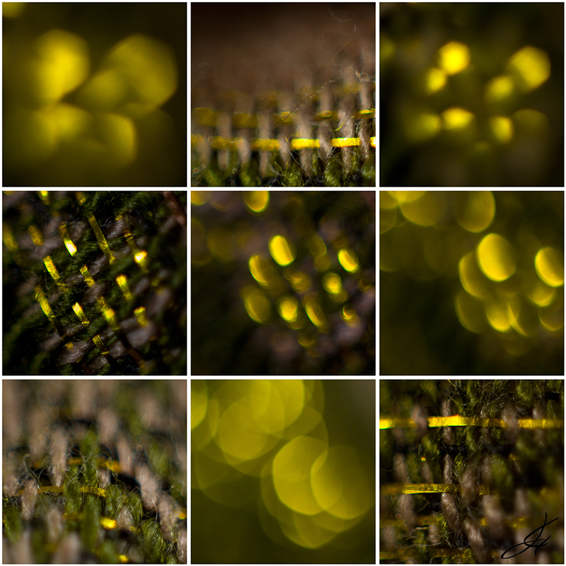 Compositie XIX: Oma’s sjaal bekeken door een macrobalg Gouden draadjes twinkelen bij het draaien aan de stelschroef van de balg. Ik verleg de sjaal en stel de lampen bij zodat de kleurschakeringen beter zichtbaar worden. Groentinten en een vleugje paars veranderen subtiel mee. Herinneringen aan mijn oma spelen tijdens het fotograferen als een film doorMeer lezen over “Fragment F497”